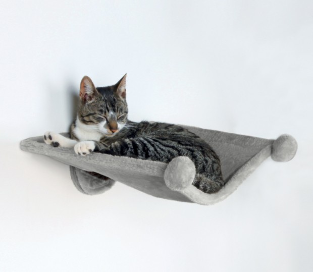 <strong>Väggmonterad hängmatta till din katt!</strong>Sovhylla med överdrag i grå plysch, hängs upp på väggen till din k...