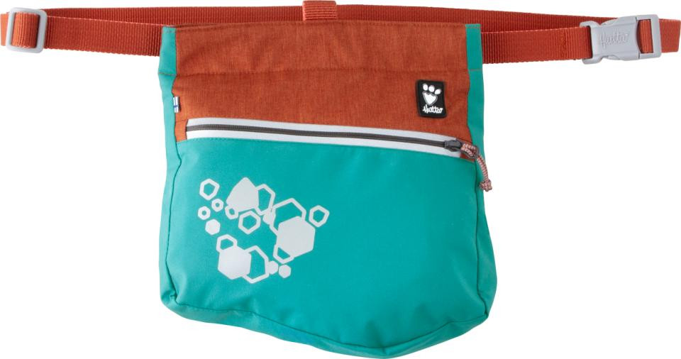 Godisväska ECO är en väska som kombinerar funktion och hållbarhet när du tränar med din hund. Väskan har ett smart magnetiskt stängningssystem som håller väskan säkert stängd under träning och uppvisningar, samtidigt som det ger snabb åtkomst till godis för att belöna din hund i rätt ögonblick. För extra bekvämlighet finns en praktisk framficka, perfekt för bajspåsar eller personliga föremål som din mobil. Den reflekterande dragkedjan ökar din synlighet och säkerhet, särskilt i stadsmiljöer. Flexibilitet är nyckeln med den justerbara remmen som gör att du kan bära väskan runt midjan eller över axeln, beroende på vad som passar bäst för dig. Inuti den dragkedjeförsedda fickan hittar du en ögla med krok, perfekt för att hålla dina nycklar säkra och lättillgängliga. Med en kapacitet på 7 dl har du gott om utrymme för alla dina träningsnödvändigheter. Tillverkad av återvunnet material Reflextryck Magnetisk stängning Ficka med dragkedja Extra rymlig ficka för godis och leksaker