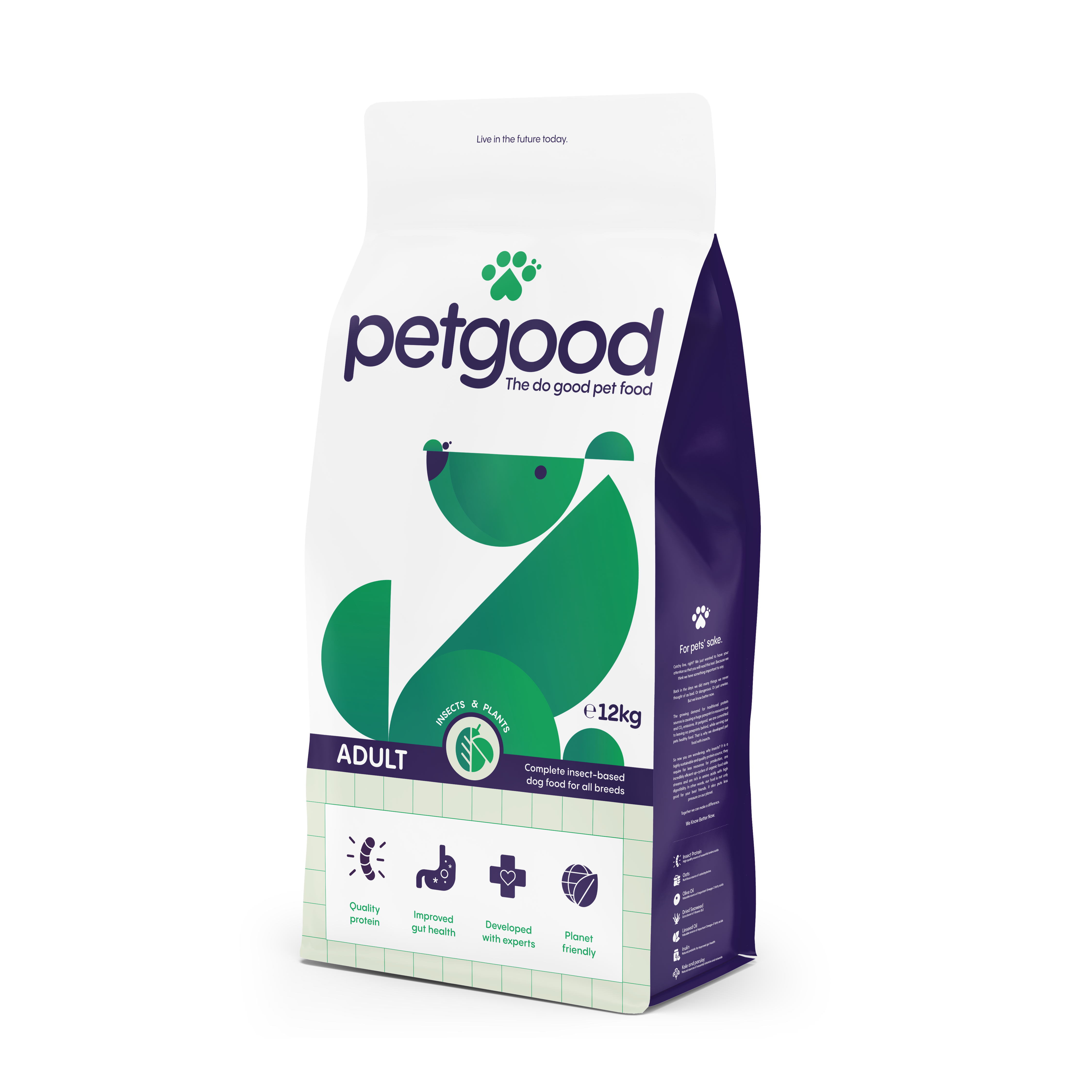 Petgoods insektsbaserat helfoder för vuxna hundar i alla storlekar. Petgoods hundfoder är speciellt framtaget av veterinärer & dietister. Hundfodret främjar en god tarmhälsa med prebiotikat inulin. Foder för alla vuxna hundar med endast en proteinkälla insekten svart soldatfluga.