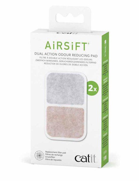 <strong>Catit Airsift Dual Action - luktreducerande filter</strong>De nya Airsift filtren innehåller dubbla filter för att minska lukten i kattlådan.<br /><br />Airsift Dual Action Pads hindrar lukt från att byggas upp i din katts kattlåda. Airsift-filtren består av två fack som möjliggör optimal luftcirkulation genom filtret. Varje ficka innehåller ett eget filtermedium som bidrar till att minska dålig lukt i kattlådan:<br /> <ul style="list-style-type:disc"><li>Det kraftfulla Catit Magic Blue ammoniak-buster</li><li>Aktivt kol för att effektivt låsa in obehagliga lukter <br /> </li></ul><strong>Ett Airsift-filter håller i ca 30 dagar.</strong> Detta baserat på ett hushåll med en katt eller två katter där kattlådan rengörs dagligen. Genom att kombinera två filtermedier minskar varje dyna effektivt både ammoniak- och fekal lukt under en hel månad. <br /><br />Varje Airsift Dual Action Odor Reducing Pad är förpackad separat, så att de behåller sin kraft optimalt fram tills dess att du sätter in filtret i kattlådan.Skapa en kattvänligare kattlådamiljö! Catit Airsift-filtren hjälper till att förhindra ammoniaklukt från att byggas upp inne i kattlådan och ser till att kattens kattlåda är ett trevligt och säkert utrymme för din kattvän. <br /><br />Filtrets storlek: 12 x 7,5 x 1,2 cm