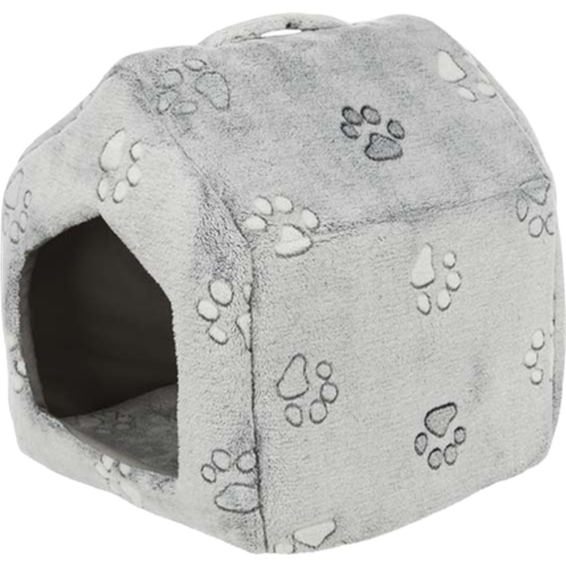Nando Cave är en riktigt mysig sovkoja för katter & små hundvalpar. Insidan av bädden består av mjuk fleece som gör att din pälskling kommer ligga riktigt bekvämt. Ett snyggt mönster med tassavtryck ger den en snygg design. Kojan har också ett bärhandtag så att du enkelt kan flytta bädden. Med halkfri botten. Trixie Nando Cave 40x45x40cm Ljusgrå